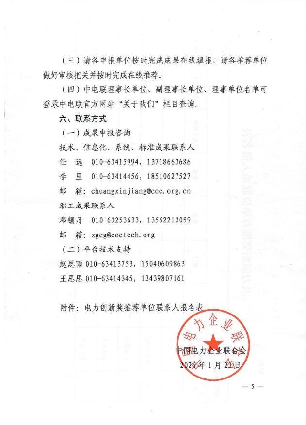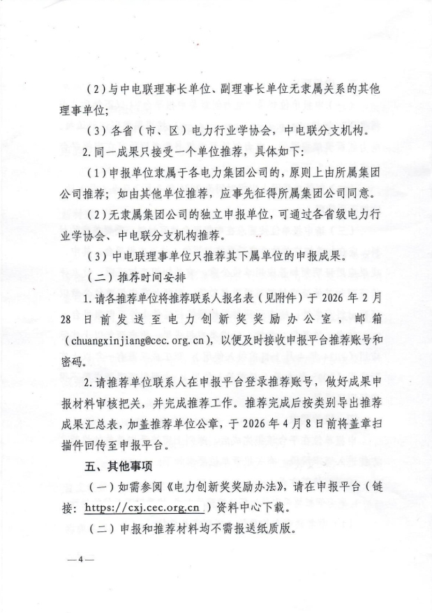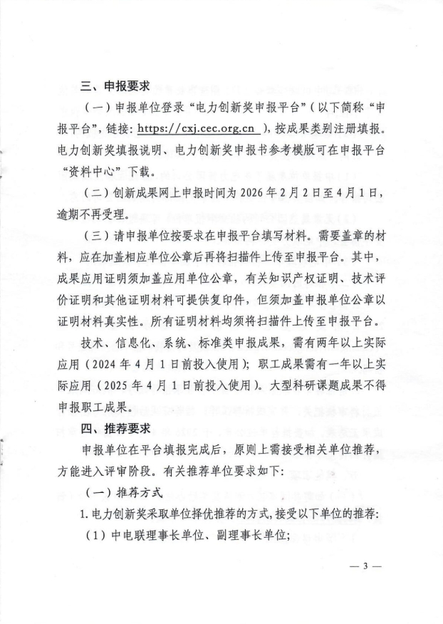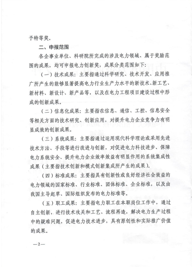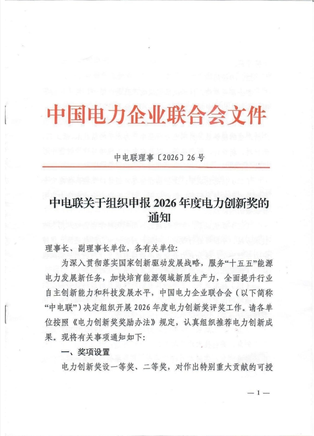 中电联关于组织申报2026年度电力创新奖的通知
