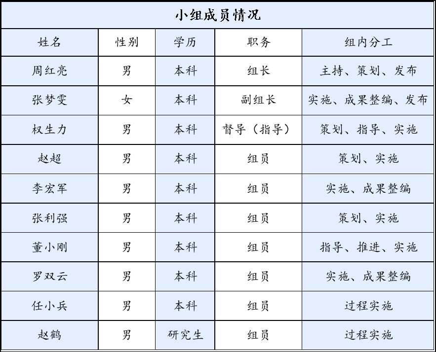 国网宝鸡供电公司“输电铁军”QC小组成立于2024年,共有成员10名,其中全国劳动模范、国家电网有限公司特等劳动模范、大国工匠1名,陕西省技术能手1名,高级工程师7名,“输电铁军”QC小组成员均集中在宝鸡公司输电线路运维和带电检修等工作岗位。