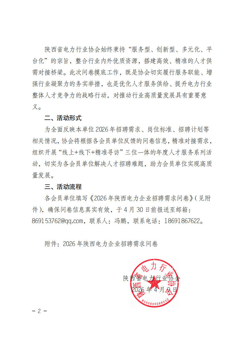 陕西省电力行业会关于开展2026年陕西电力企业招聘需求问卷调查活动的通知.pdf