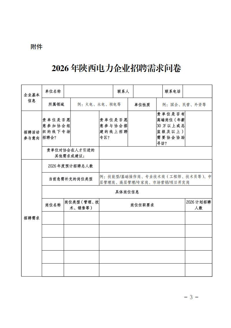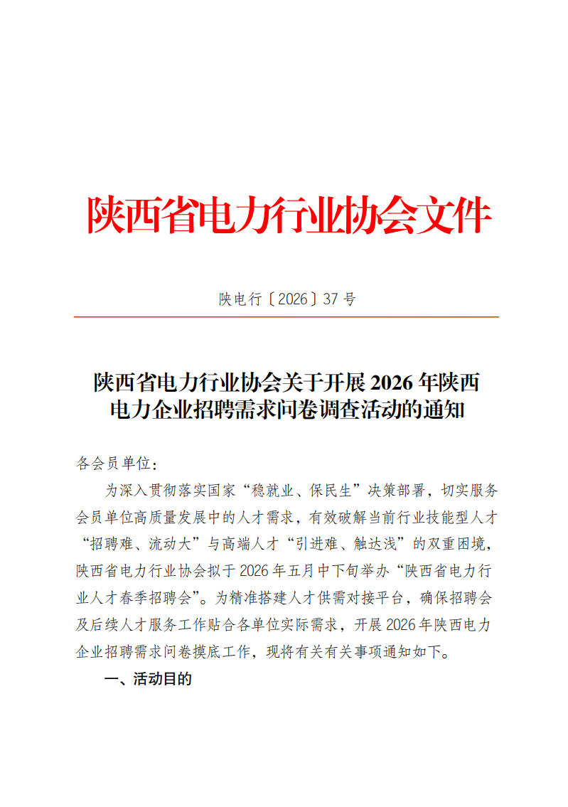 陕西省电力行业会关于开展2026年陕西电力企业招聘需求问卷调查活动的通知